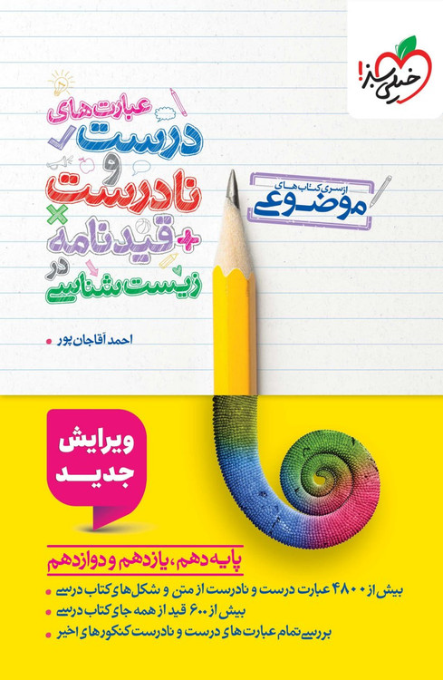 در کتاب موضوعی عبارتهای درست و نادرست متناسب با کتاب درسی، تعدادی عبارت درست و نادرست و تعدادی عبارت ترکیبی آورده شده تا شما درستی آن را بسنجید. در قیدنامهی کتاب در انتهای هر گفتار، تعدادی عبارت تحت عنوان قیدها آورده شده که به بررسی اختصاصی قیدهای هر گفتار کتاب درسی میپردازند. بخش دیگر عبارتهای کنکوری است که در پایان هر فصل قرار دارد و به عبارتهای کنکوری که شامل کنکورهای 90 تا 99 هستند میشود . برخی از عبارتها متناسب با تغییرات کتاب درسی همسانسازی شدهاند. در پایان کتاب پاسخنامهی تشریحی قرار دارد که در آن نکتههای اصلی درست یا نادرست بودن هر عبارت به شکل کامل توضیح داده شده است.