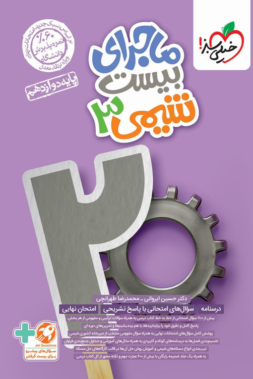 کتاب ماجرای شیمی دوازدهم انتشارات خیلی سبز، برای دانشآموزانی که قصد دارند امتحانهای تشریحی ترم اول و دوم این درس را با موفقیت طی کنند انتخاب بسیار مناسبی است. این کتاب آموزشی همراه با درسنامهای تألیفی و کامل خود میتواند منبعی اصلی برای دانشآموزانی که فقدان کلاس آموزشی را دارند مفید باشد. این کتاب با فصول هماهنگ با کتاب درسی و لحن ساده و روان خود از چند بخش تشکیل شده است. بخش اول درسنامهی کتاب است که نکات مهم هر درس را بهطور کامل توضیح داده است. بخش دوم سؤالهای امتحانی است که دانشآموزان را برای آزمونهای مشابه آماده میکند. بخش سوم کتاب پاسخنامهی تشریحی است که به سؤالات بهصورت تفصیلی پاسخ داده و علت درستی گزینههای صحیح توضیح داده شده است. بخش چهارم کتاب خلاصه درس است که چکیدهی تمام دروس را ارائه میکند تا بتوانید بهراحتی مرورشان کنید. بخش پنجم مشاورهی امتحان است که در چند صفحه خلاصهوار در مورد سؤالهای امتحانی، بخشهای مهم کتاب و چگونگی پاسخ دادن به سؤالها به شما مشاوره داده است. بخش ششم و پایانی کتاب امتحانات نهایی است که امتحان نهایی نظام جدید با پاسخ تشریحی آنها ارائه شده است تا دانشآموزان با نمونه سؤالات آن آشنا شوند.